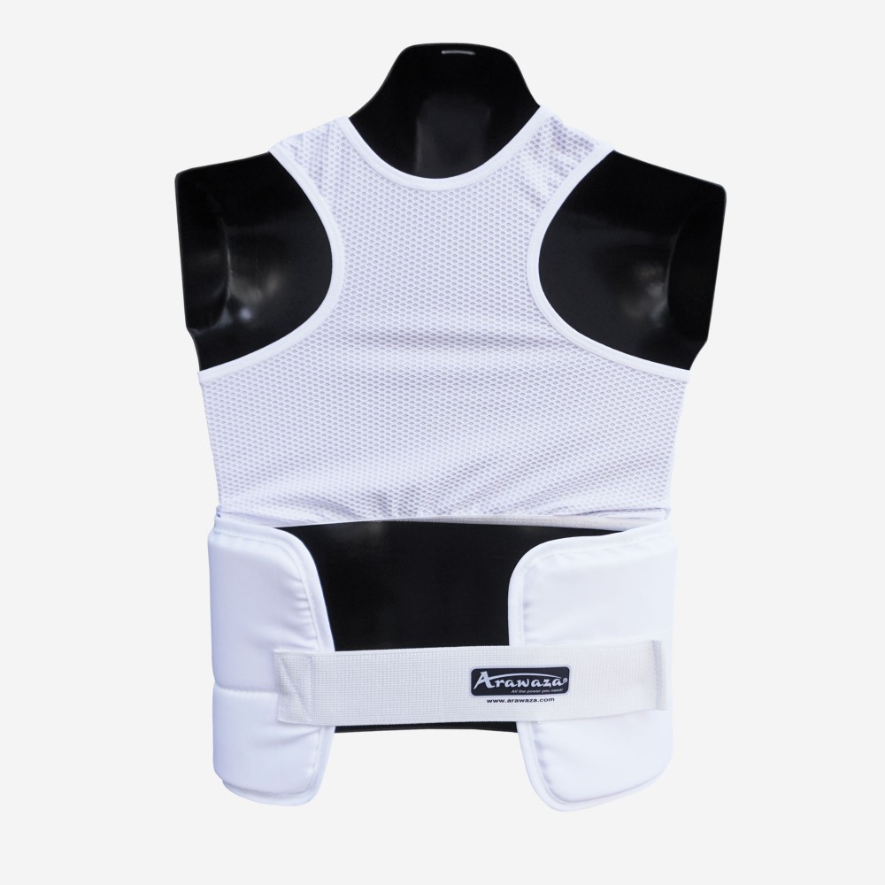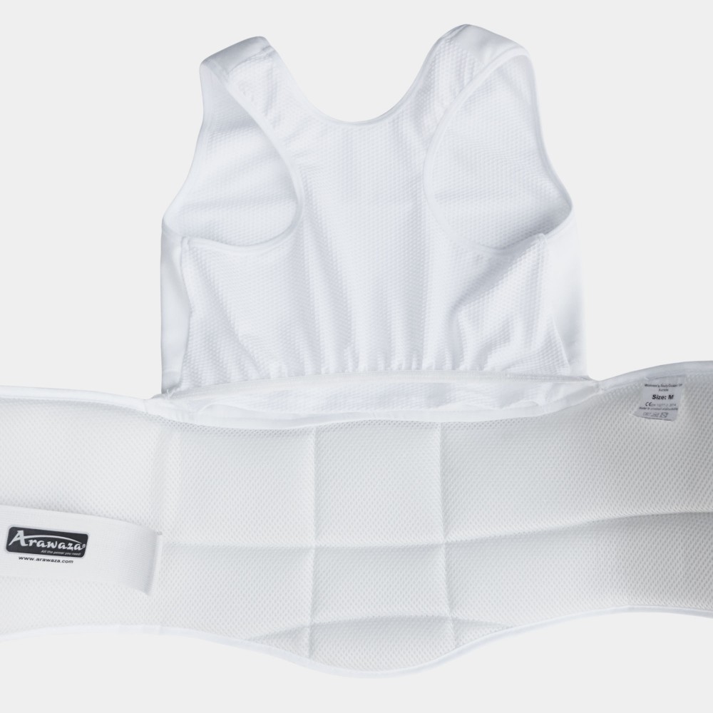 Женская защита корпуса Arawaza разработана для женщин, занимающихся каратэ, и предназначена для ношения под кимоно. Идет в дополнение к защите груди.